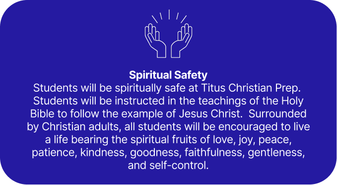 Titus Christian Prep educates students by providing a challenging academic program rooted in Biblical truth, creating a learning environment with high expectations for both knowledge and character. We partner with families to build and reinforce each child’s spiritual foundation, and we joyfully share the love of Jesus Christ within our school and throughout the community.